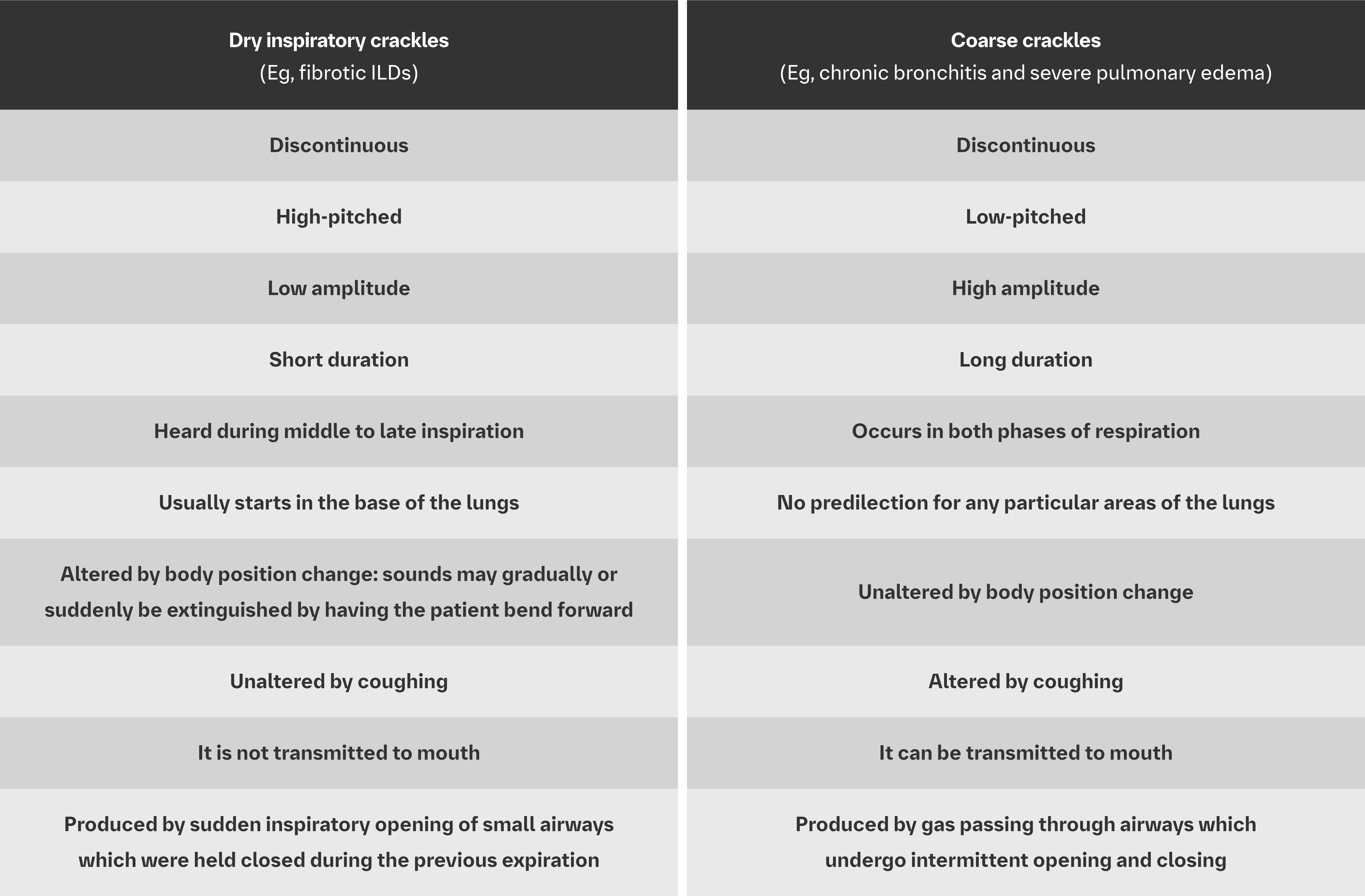 Dry inspiratory crackles are distinct from coarse crackles10-12